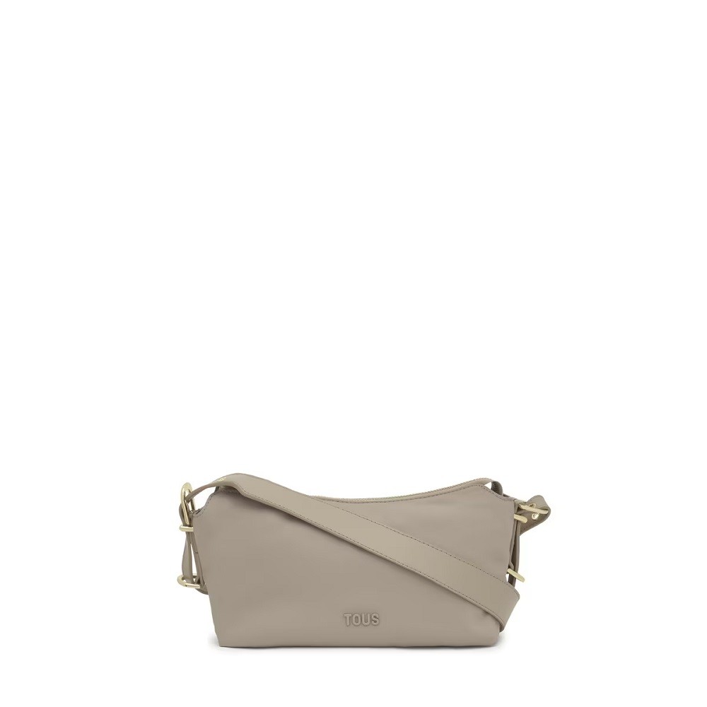 Bolso bandolera pequeño TOUS Buckles Soft de poliéster reciclado en color topo.