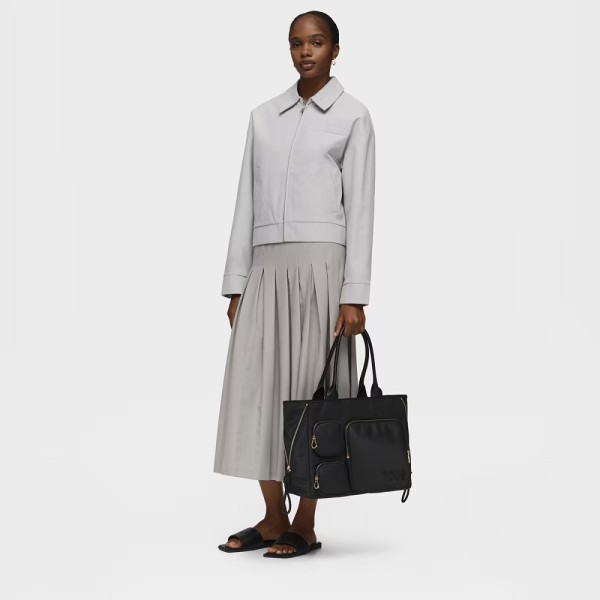 Bolso shopper grande TOUS Roomy de poliéster reciclado con detalles de poliuretano en color negro.