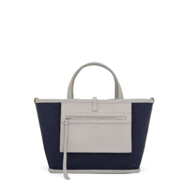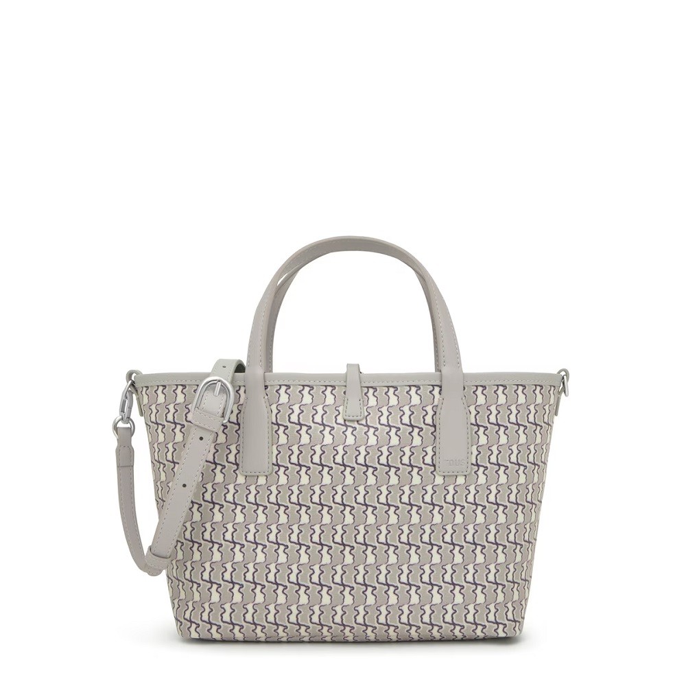 Bolso capazo mediano reversible TOUS Double Way Bear de algodón y poliéster reciclado con detalles de poliuretano en color topo.